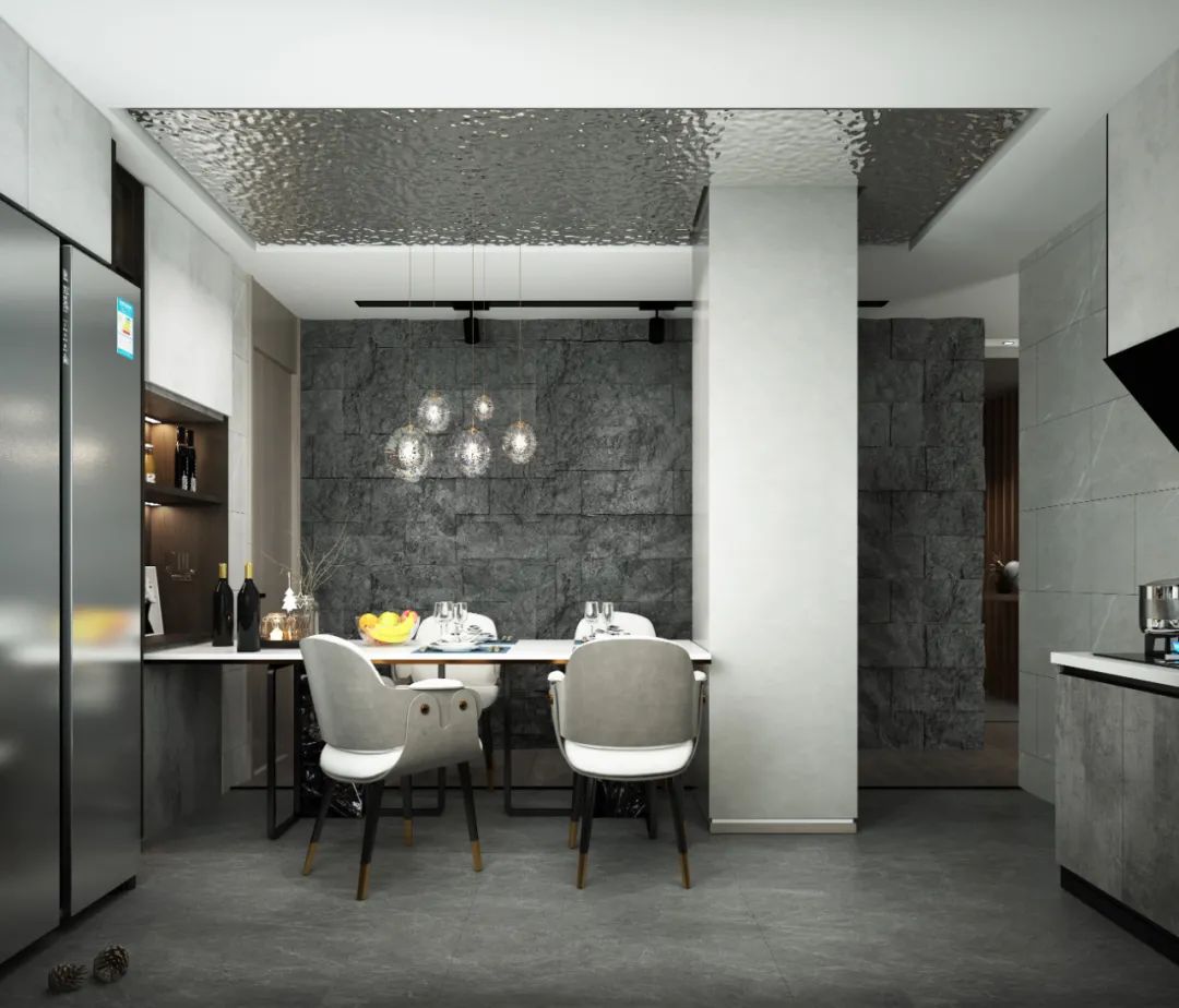 本案房主不是長在昆明住,所以餐廳考慮兩用功能!既兼顧了餐廳所需也兼顧接待所需!