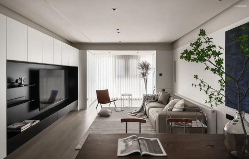 帶大家走進一個簡約中透露著慵懶氣息的豪宅空間。設計中,最有意思的是男女屋主性格碰撞產生的獨特靈感,男屋主從事互聯網行業,習慣用理性思維看待事物,女屋主的生活認知則充滿感性,喜歡經典唱片,做飯,旅游。將兩種不同風格結合在一